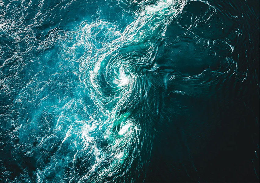 Nei momenti più tranquilli l’acqua sembra scorrere placidamente; poi pian piano acquista velocità e comincia a cadere come una cascata e a formare vortici sempre più grandi. Questo succede quattro volte al giorno, ogni sei ore, ripetendosi sempre e variando di intensità a seconda delle posizioni della Luna, i solstizi, i venti e la pressione atmosferica.