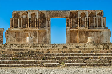 Il chiosco di tè allestito in una grotta di fronte al Monastero è un buon punto di osservazione da cui ammirare la facciata ellenistica dell’edificio. Il cortile davanti al Mo- nastero, dove si tenevano le cerimonie sacre, un tempo era circondato da colonne.