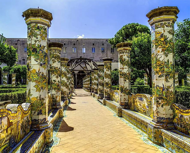 Il Chiostro di Santa Chiara, così come è più notoriamente conosciuto si trova tra via Santa Chiara e Piazza del Gesù nuovo e comprende:
