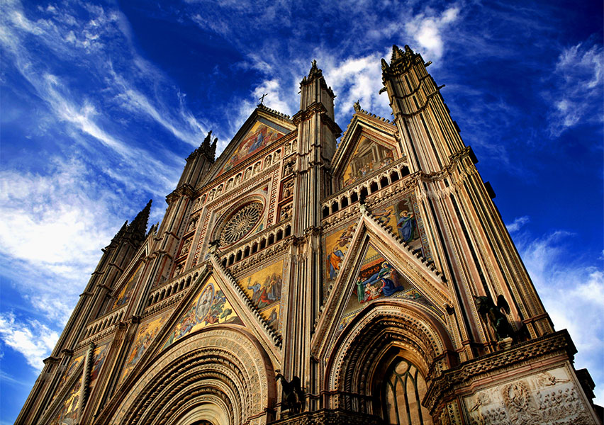 Mattino incontro dei partecipanti, sistemazione in pullman e partenza. Arrivo ad Orvieto, incontro con la guida e visita. Orvieto è città d’arte e ricca di storia, di antiche origini la rupe fu importante città Etrusca di cui sono presenti indelebili testimonianze nel centro storico, fu anche potente comune medievale e sono di questo periodo storico molti dei suoi imperdibili e monumenti principali tra cui il Duomo, la Torre del Moro, Il Palazzo del Popolo, ed alcuni dei più bei palazzi nobili. Il Duomo, in particolare, racchiude opere d’arte, sculture e dipinti di assoluto valore, tra tutti la cappella di San Brizio che presenta un capolavoro della pittura italiana dei primi del ‘500 con il ciclo di affreschi incentrati sul Giudizio Universale ad opera di Luca Signorelli, un mirabile esempio di colori e forme talmente evocativo che fu motivo di ispirazione per Michelangelo nella realizzazione della Cappella Sistina. Pranzo in ristorante. Nel primo pomeriggio partenza per Todi e visita guidata della città: cinta da tre concentriche cerchia di mura che ne testimoniano l’estensione raggiunta dalla città rispettivamente in epoca umbro-romana, romana e medievale. Poco prima di entrare nel cuore del centro storico si incontra l’imponente chiesa di Santa Maria della Consolazione, una delle opere più alte del Rinascimento in Umbria. Al termine della visita proseguimento per Perugia, all’arrivo sistemazione in hotel, cena e pernottamento.