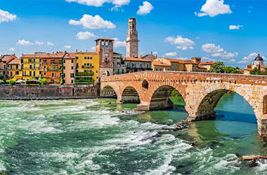 Colazione e incontro con la guida per visita a piedi della città di Verona: famosa per la sua Arena e per essere stata la patria di Romeo e Giulietta. Passeggiando per la città ammireremo tracce delle fastose origini romane, grandiosi palazzi rinascimentali, imponenti fortificazioni. Tempo libero per il pranzo e partenza per il ritorno.